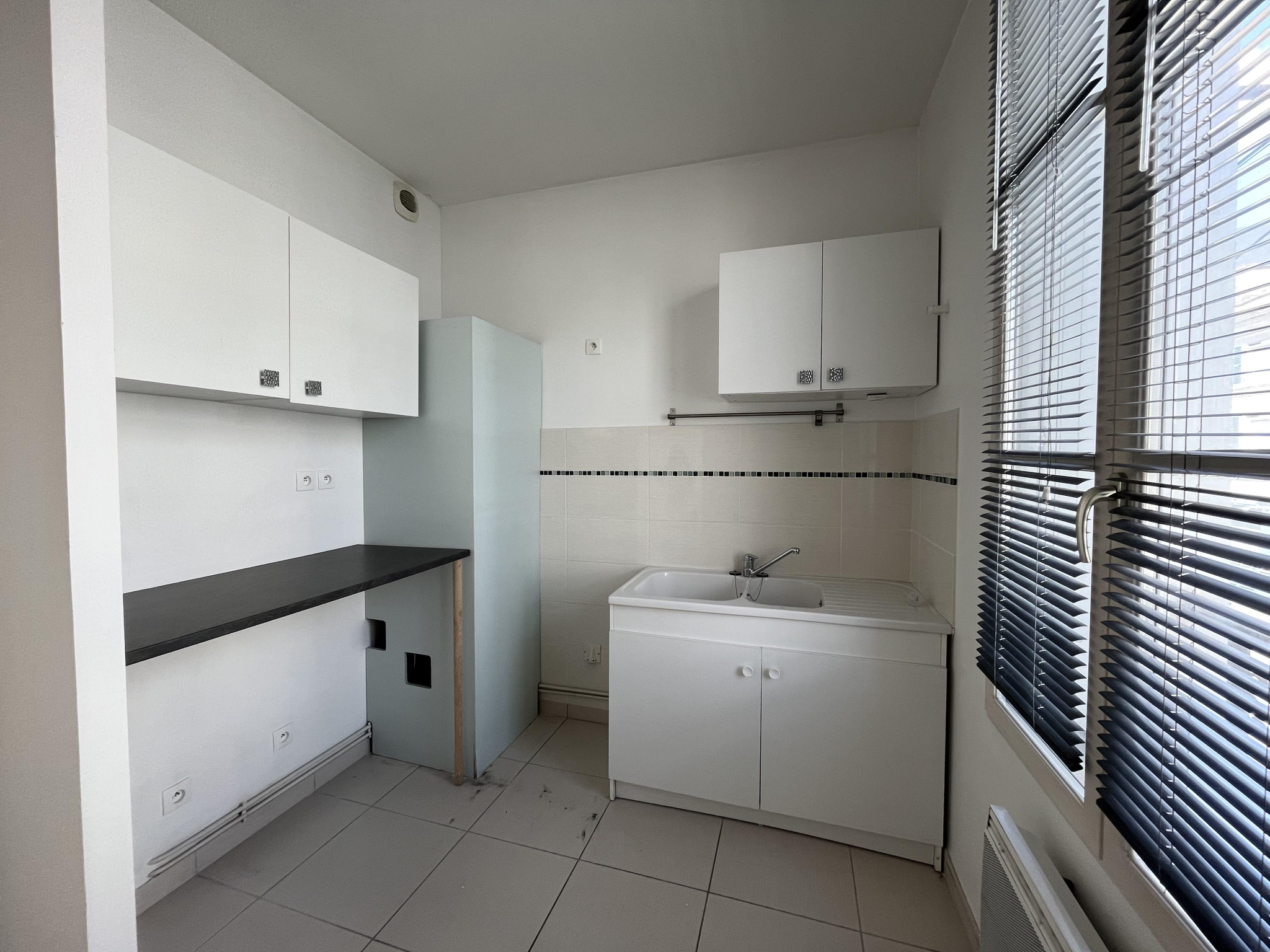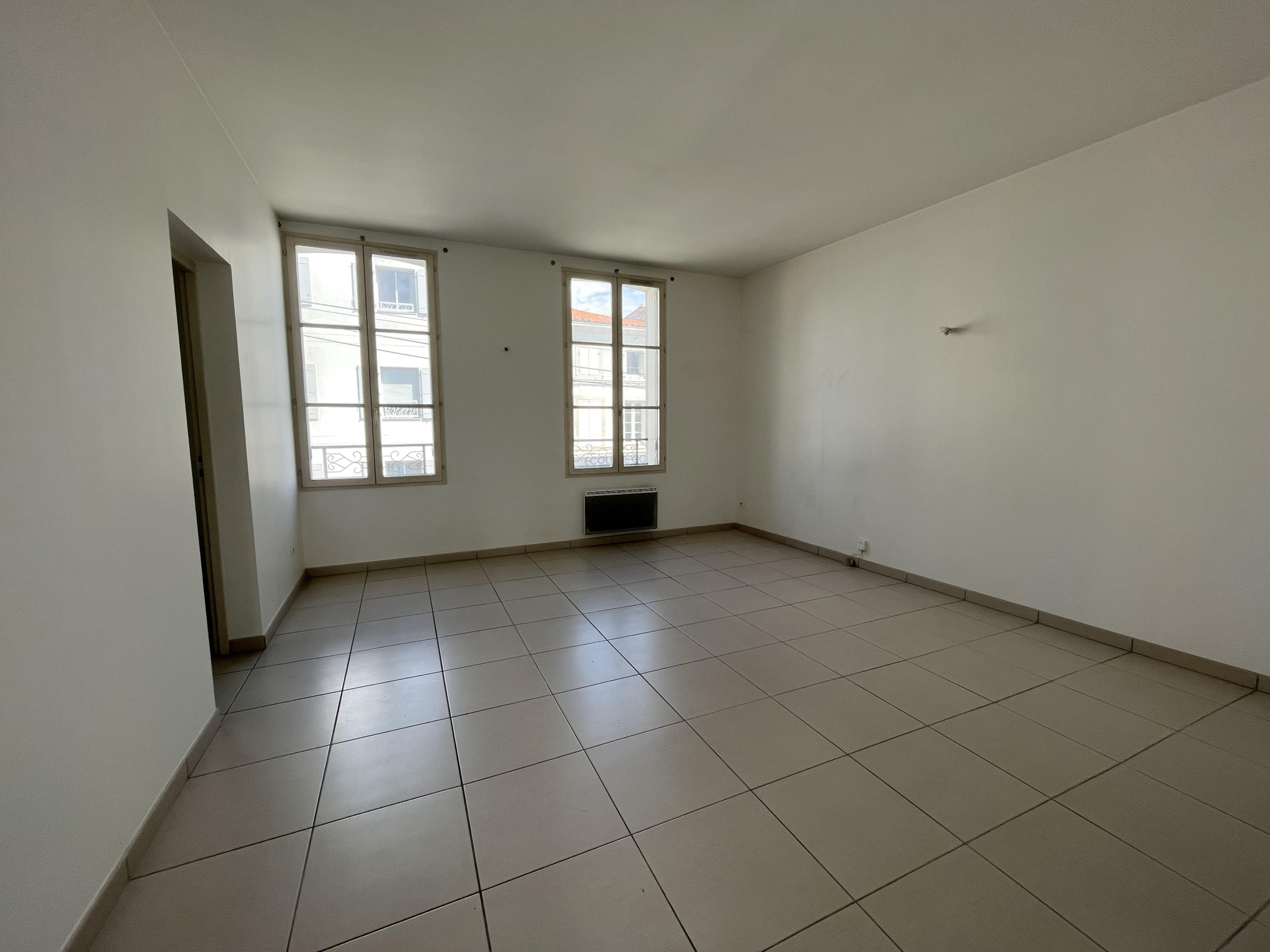 Niort, Centre-ville, rue Gambetta. Appartement T2 lumineux, d'une superficie habitable d'environ 45 m2, situé au premier étage d'un immeuble sans ascenseur comprenant : entrée, salon/séjour, cuisine séparée non aménagée et non équipée, chambre, salle d'eau avec wc. Emplacement de parking privé. Provision sur charges incluse au titre de la consommation d'eau et de la taxe sur les ordures ménagères. Disponible à compter du 13 juillet 2026.