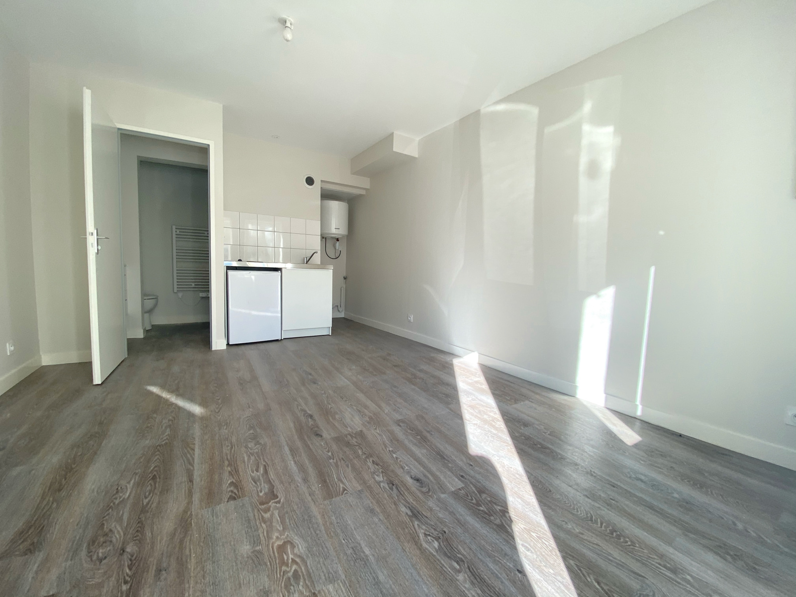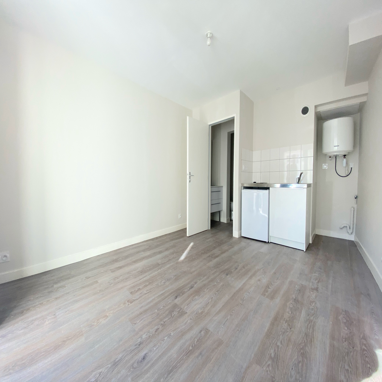 Niort, centre-ville, à quelques pas de la place de la Brèche - Studio d'une superficie habitable d'environ 17m2, situé au rez-de-chaussée, comprenant : pièce de vie avec coin kitchenette (plaque de cuisson, petit réfrigérateur avec partie fraiseur), salle d'eau avec wc. Provision sur charges incluse au titre de la consommation d'eau et de la taxe sur les ordures ménagères. Disponible dès à présent.