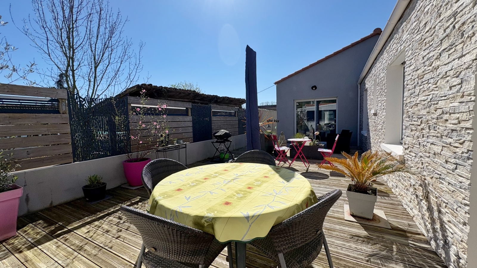L’ensemble est implanté sur un terrain clos et arboré de 1 058 m².